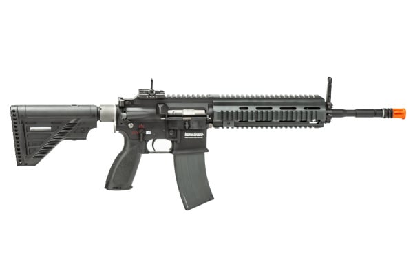 This Gas Blowback Rifle is THEE most realistic airsoft representation of the H&K 416 on the entire planet. This gun is full metal and feature officially licensed H&K trademarks all over the gun. Everything about this replica just screams quality. From the super rigid construction, the way the charging handle slides and pulls the bolt back, the sound it makes when firing, even down to the attention to detail. One can easily tell this 416 was made with love. The HK rail system equipped allows for a variety of aftermarket accessories such as PEQs, flashlights, foregrips, and more. And the upper receiver also features a picatinny top for optics of the users choosing. A fully adjustable stock can also be found here to suit every shooter's arms regardless of length. With all these qualities its easy to see why this rifle is a fan favorite among airsofters, especially those knee-deep in the MILSIM scene or who have an appreciation for weapon development history.