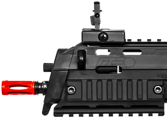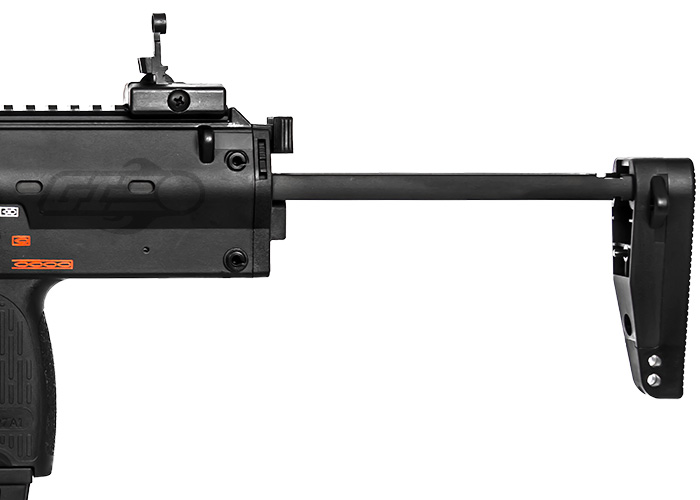 Compact firepower is what you get from the HK MP7 Gas Blowback Tactical Airsoft Gun. This stout airsoft gun is a 1:1 replica, in size, of the MP7 made by Heckler & Koch. Its function is realistic - from its blowback action, flip-up sights, and functioning cocking handle to its retractable stock. Add the strength of a fiber reinforced polymer body and metal Picatinny rails to its thumping 900 shots a minute and this HK MP7 becomes a vital part of your close quarter arsenal. With the forward RIS rail you are able to mount accessories such as foregrips, PEQ's, and flashlights. The Elite force MP7 Navy is a superior close quarters gun.