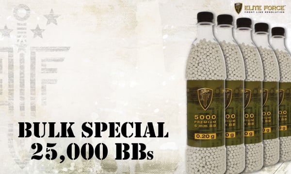 One of the newest BB brand on the airsoft market, and sure to be a huge hit. These BB's are as close to a perfect 6.00mm as you can get. Rather than keeping their bb's in a flimsy, hard to handle and reseal bag like other brands, Elite Force BBs come in an easy to handle and easy to store bottle so you don't have to worry about a bag tipping over and making a mess. The well known Elite Force BBs are now available in a bulk package. If you were to purchase each individual bottle separately, you would be spending much more.