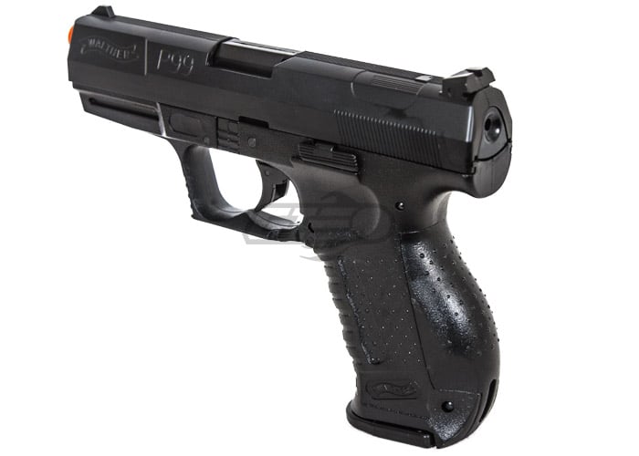 The Umarex Walther P99 Spring Powered Pistol Airsoft Gun is constructed primarily from plastic that keeps the weight down but is not as durable as its high end metal counter part. The Umarex Walther P99 Spring Powered Pistol Airsoft Gun is operated by racking the slide which cocks the spring for a single shot. The spring system used in this gun allows it to be very affordable, however it is not skirmishable or realistic. The Umarex Walther P99 Spring Powered Pistol Airsoft Gun has realistic features such as realistic sights, slide cocking serrations, textured grip and magazine release. Despite the realistic features, the Umarex Walther P99 Spring Powered Pistol Airsoft Gun leaves much to be desired in the authenticity department.