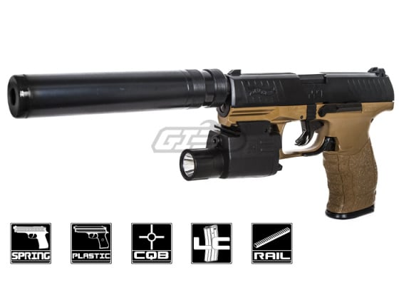 Elite Force Walther PPQ Spring Airsoft Pistol w/ Mock Suppressor (Dark Earth/Black)