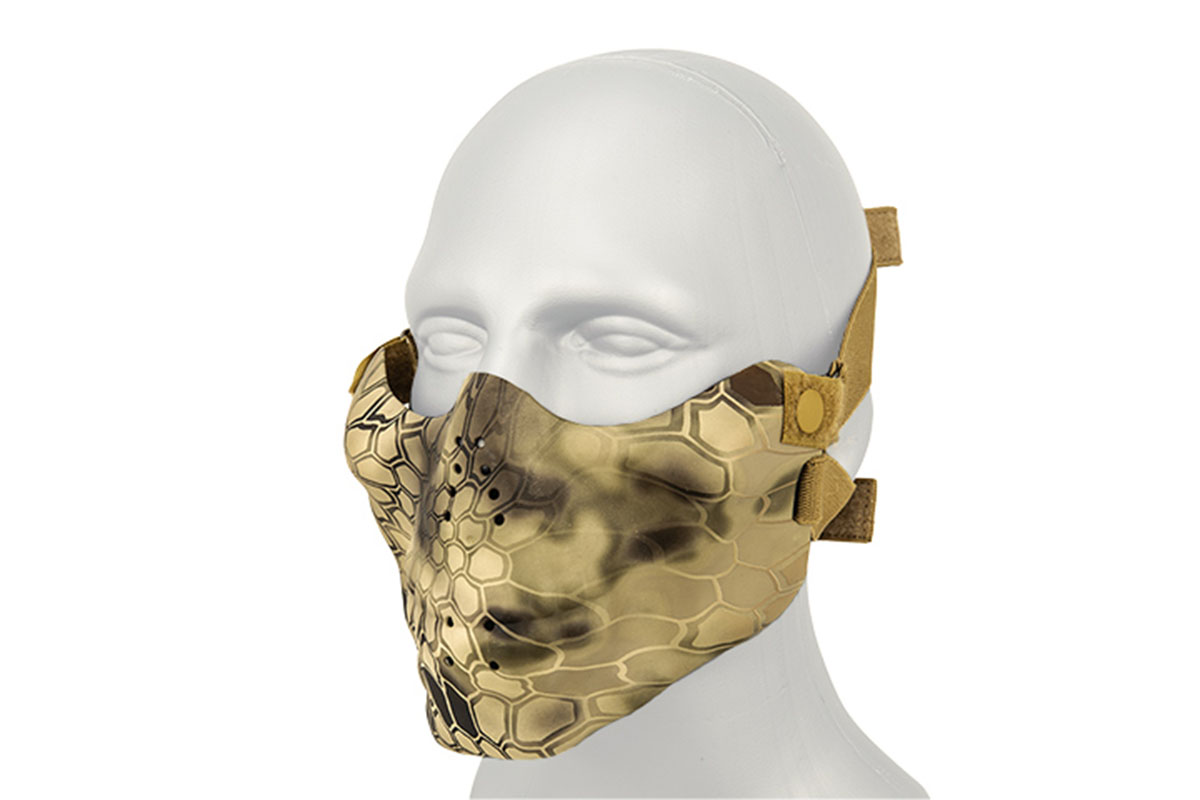 [30899 / AC-587HI]The Emerson Half Face Skull Mask is designed to protect the users lower portion of their face and part of their nose. This mask is constructed out of a polymer to qualify for certain lower face protection at most airsoft fields. The half mask can be secured and adjusted with the elastic straps on the rear of the mask. This is a low profile and simple way to protect you face in conjunction with proper eye protection, the overall result is a lightweight setup.