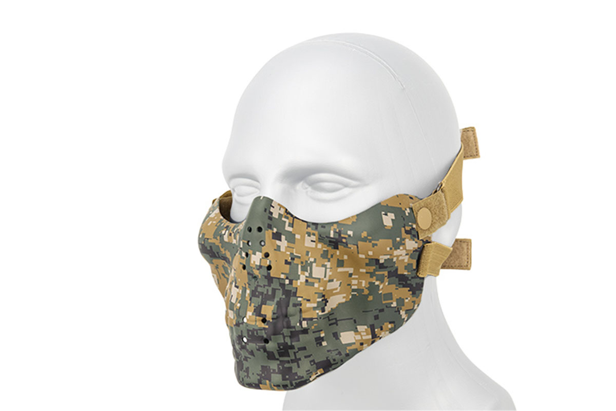 [A03F01][30898 / AC-587DW]The Emerson Half Face Skull Mask is designed to protect the users lower portion of their face and part of their nose. This mask is constructed out of a polymer to qualify for certain lower face protection at most airsoft fields. The half mask can be secured and adjusted with the elastic straps on the rear of the mask. This is a low profile and simple way to protect you face in conjunction with proper eye protection, the overall result is a lightweight setup.