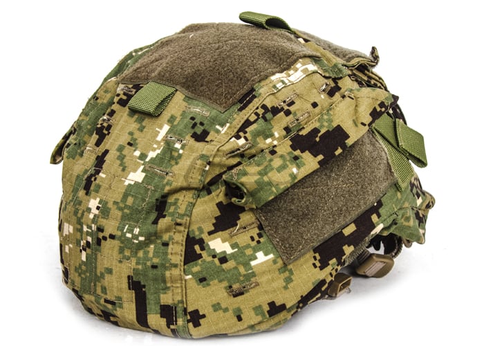 [ST01][15621 / AC-205]The Emerson MICH 2001 Jungle Digital Helmet Cover is a great way to aid in concealment and add more tactical options to your helmet loadout. The cover is colored in a jungle digital pattern, allowing for concealment in green and brown environments. The helmet cover can be used on any MICH 2001 style helmet, allowing flexible camouflage and styles to the user's helmet loadout. There are several velcro spaces on the cover, allowing for the attachment of nametapes, IFF, unit patches, or your own favorite morale patches.