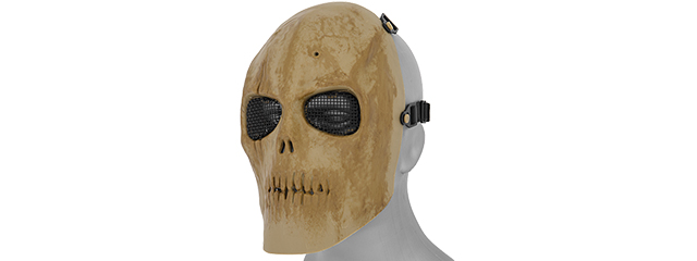[37932 / AC-475B2]The Skull Emerson Villain Skull Mesh Mask is designed to protect the user's face from BB Impacts. This mask is constructed out of a solid plastic material to impede the impact of a BB to qualify face protection at most airsoft fields. The mask can be secured and adjusted with the elastic straps on the rear of the mask. The eyelets are covered by mesh to provide moderate protection from BB impacts, but full seal eye protection is recommended beneath the mask to prevent dirt, dust, or shattered BB fragments do not pass through the mesh and cause injury. This is a low profile and unique way to protect you face in conjunction with proper eye protection, the overall result is a unique look on the field from other lower face masks.