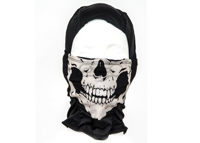 [V07G06B][15685 / AC-176B]The Emerson Black Skull Balaclava is a perfect option if you are looking for something lightweight to help cover and conceal your face and neck, while still giving you a thin extra layer of protection over both. It has a single hole, large enough to see out of, but still small enough to be covered by goggles, and is light enough to not be burdensome while playing. This balaclava is a great piece of tactical gear used to enhance the look of any loadout. The skull imprinted on the fabric not only gives it a vicious look, but also glows in the dark, making it great for night time use! The fabric used is elastic and breathable, and works in hot environments by blocking your skin from the sun, and it keeps you somewhat warm in colder environments while not being too stuffy and cumbersome.