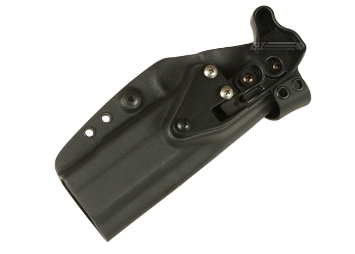 This G-Code XST Standard Holster is meant for non-railed 1911 airsoft pistols. It features G-Codes superior friction-lock that is adjustable to create the perfect fit for your gun, as well as a spring-loaded button-release hood that wraps around the back of the gun's grip for added protection. This holster creates an extremely sturdy hold with an ergonomically friendly release that is sure to give you an upper hand in a combat situation.
