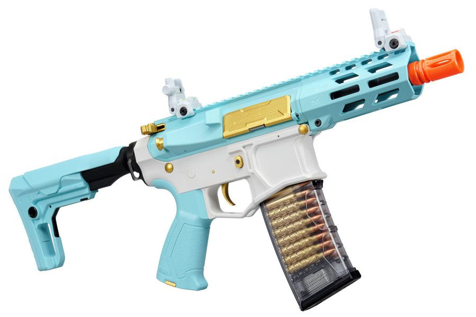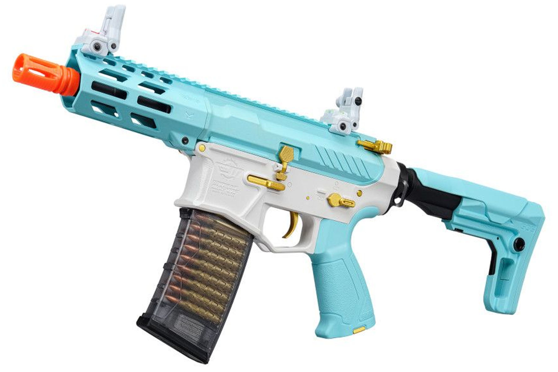 The G&G CM16 Batto M4 AEG in Macaron Blue pairs a striking blue/white/black finish with a compact, maneuverable profile built for close-quarters play. The exclusive colorway stands out on indoor fields while the polymer receiver and handguard keep weight low for fast target transitions and reduced fatigue.
