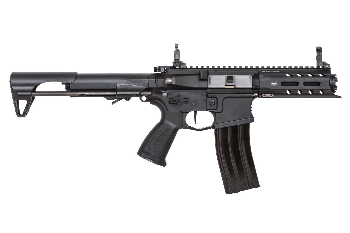 The G&G Combat Machine ARP 556 CQB AEG Airsoft Gun is the bigger M4 magazine capable full metal brother of ARP9. This gun is designed to be an absolute CQB monster capable of maneuvering through those close quarters battle environments while keeping your profile small and being easy to point.