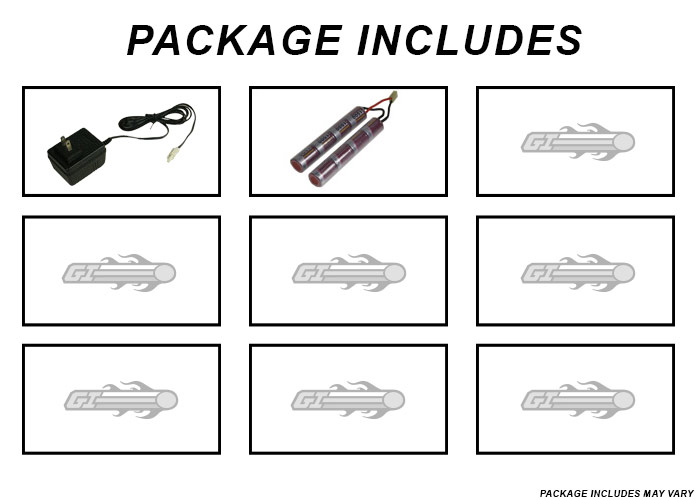 Package Includes: One (1) Gun, One (1) Magazine, One (1) Battery, One (1) Charger