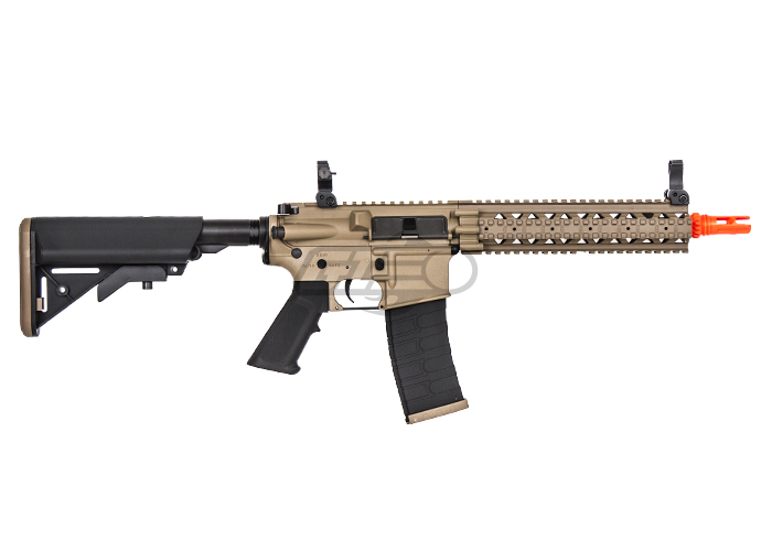 Internally, the G&G MK18 is equipped with a reliable, high performance gearbox. The steel gears and polycarbonate piston provide bulk to the main drive train components. The polycarbonate ported piston head and brass cylinder provide a better seal leading to a more consistent output. The velocity of the MK18 comes in at 340 FPS, this combined with the lightweight polymer body and short barrel make this rifle perfect for close quarters engagements. Overall, this is a well built airsoft gun with a plethora of features at an affordable price. G&G has done another excellent job in manufacturing a more versatile yet affordable product in the airsoft industry. This rifle comes in Tan/Black Two Tone.Specifications: