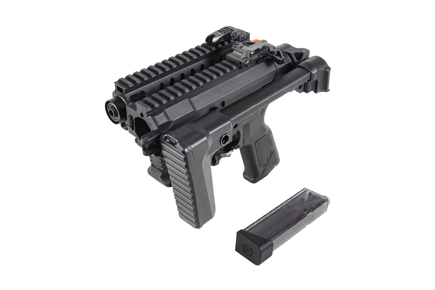 Take the expression "rapid deployment" to a whole other leve! Introducing the brand new G&G Combat Machine FAR 9 AEG! While at first glance the new AEG might just appear to be a longer variation of the ARP9, however this airsoft gun is full of surprises. Chief of which is it's literal folding capabilities. The FAR series of AEGs features a CHFS folding stock which will house the battery. This is the same stock which can be found equipped on the ARP9 3.0 AEG and will offer a surprising amount of space for your lipo batteries. However the front end is also capable of this level of folding. When folded, the barrel assembly remains attached to the now folded rail section, seperating itself from the gearbox and receiver set. This allows for the rifle to be carried very discreetly and can be stored in extra compact spaces!