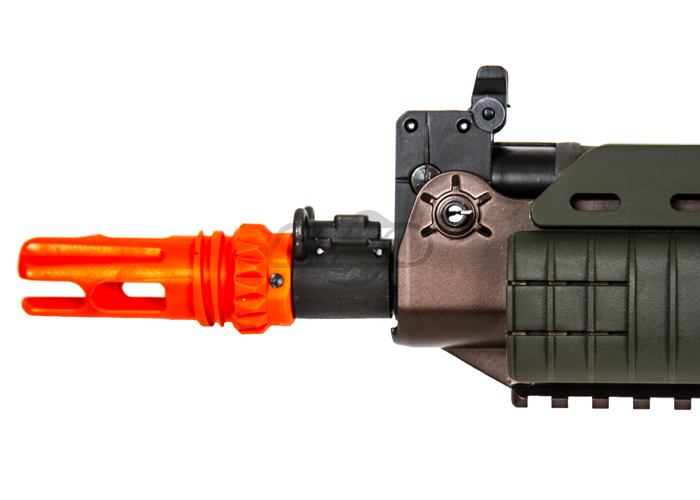The G&G GK 5C GL is another well built airsoft gun in addition to their line quality products. Externally, this is a very unique looking airsoft gun. The green finish will blend well in different environments. Towards the rear of the gun the GK 5C GL features a folding and retractable stock. The upper and lower receivers are constructed out of metal for increased durability. Towards the front of the gun is a polymer hand guard with dedicated rail segments for mounting accessories such as flash lights, lasers, vertical grip, etc. The monolithic upper rail offers the user options when mounting their optic for proper eye relief. Lastly, the gun features and ambidextrous fire selector and functioning bolt catch for added realism. Internally, the GK 5C GL features G&G's "Top Tech" gearbox with Reinforced gears, piston, and 8mm ball bearings offer a longer lasting airsoft gun while still being able to perform exceptionally well on the field. Overall, this unique airsoft gun is designed extremely well with performance and reliability in mind.