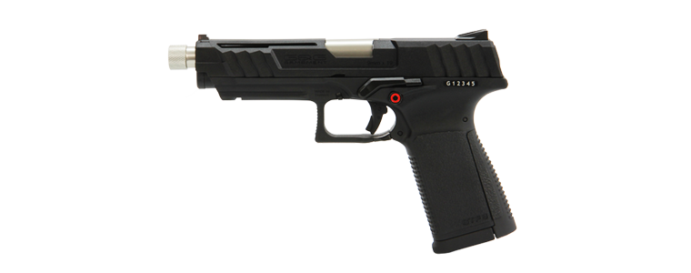 The GTP9 Gas Blowback Airsoft Pistol brings in an innovative and new design into the airsoft world. Both the slide and frame are made out of a tough polymer build to hold up through usage. There are ports on the slide to lighten the weight and reveal the outer barrel. The slide serrations make it easy to rack the slide for your next shot. On the rear of the pistol grip, there is a changeable backstrap that comes with a hop-up adjustment tool. G&G has included a spare backstrap in a different size for players that want to switch up their grip fitment.