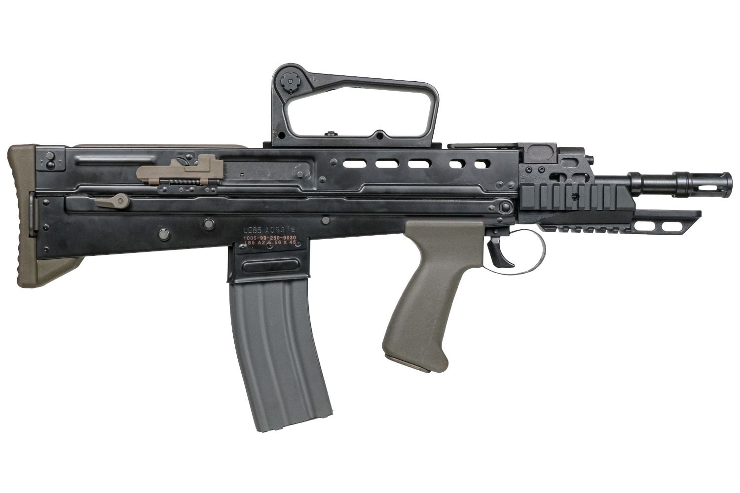 The L85 or SA80 Bullpup rifle is one of the most iconic firearms in the world. Synonymous with the UK Armed Forces, this unique looking replica from G&G boasts high quality internally and externally. The receiver sports a full metal construction with some polymer furniture, just like the real life equivalent. However this AFV variant sports a much shorter outer barrel and picatinny rail system, allowing the user to add accessories. Atop the receiver the carry handle is removable, allowing for the use of optics.