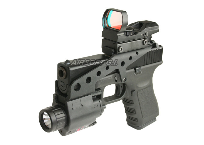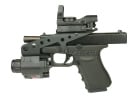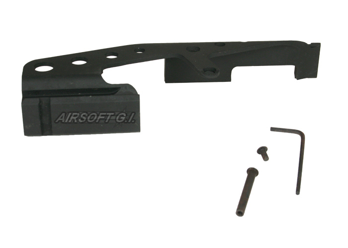 The G&G M19 Scope Mount gives the user the option of mounting a red dot scope onto a KSC/KWA M19. This type of set up is popular among competition shooters and is an inexpensive option for players into airsoft IPSC. The mount attaches to the M19 tactical rail and replaces the trigger push pin. Instead of spending thousands of dollars upgrading a Westen Arms or Tokyo Marui 1911 someone could trick out their M19 for a fraction of the price.