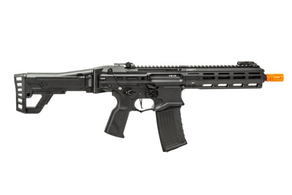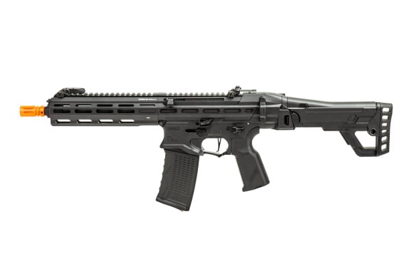 Combining everything you loved about the PCC 45 and the MXC 9 aeg, all rolled up into a 556 platform! Lightweight, tough, and full of surprises, this newest AEG delivers on all fronts. Taking stylings and design ques from several models like the stock of a masada amongst others, while adding modern features such as a full mlok rail system and -14mm ccw threads, meaning you have an airsoft gun that's comfortable, practical, and ready to be customized out the box! Paired with their G2 V2 gearbox, you can add even further upgrades onto this sick 556 rifle while still keeping that awesome reliability. If that weren't enough, this AEG not only takes its own magazine, but other M4/M16/AR15 style magazines as well, so you'll never have to worry about finding magazines as they'll be available almost anywhere!