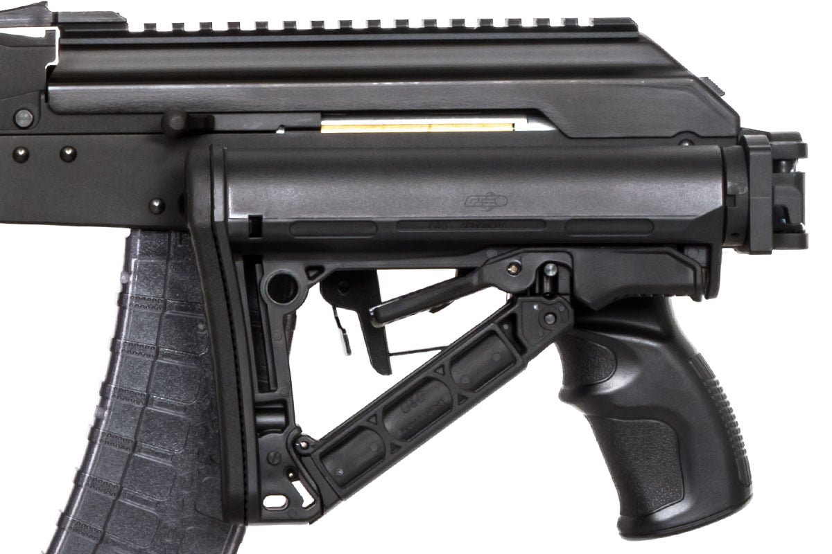 The G&G RK74 CQB KeyMod airsoft gun is a great solution for those looking for an AK with unique tactical features for close quarters combat. This model is smaller than other AEG rifles in the RK74 line, clocking in at 690 to 770mm depending on the stock position. The size is excellent for operations in buildings or for one-on-one battles. It comes with a 5-inch handguard system that has KeyMod/Weaver sections on the side with rails on the top and bottom for holding accessories such as optics and lights. Most AKs require the user to buy an aftermarket optic mount to use scopes or red dots, but this G&G AK comes with a top rail that is stretched along the receiver. The long rail space is great to fit a variety of different optics depending on the user's preference.