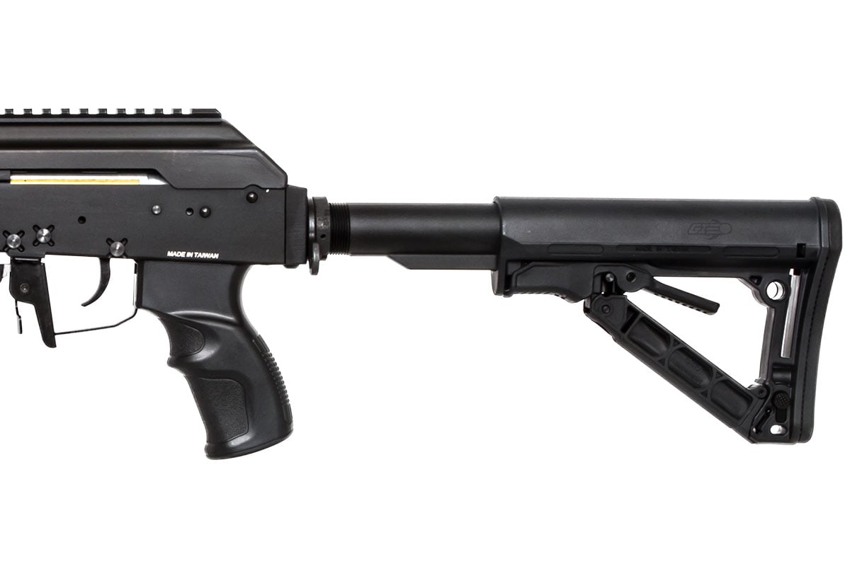 The G&G RK74-E KeyMod airsoft gun is a great solution for those in search of an AK with unique tactical features that can be customized for your needs. This model comes with a 9.5-inch metal handguard system that has KeyMod sections on the side with rails on the top and bottom for hosting accessories. Most AKs would require the user to buy an aftermarket optic mount to use scopes or red dots but, this G&G full metal AK comes with a top rail that is stretched along the receiver. The long rail space is great to fit a variety of different optics depending on the user's preference. Additionally, the GOS stock is foldable or adjustable to five positions depending on what the mission requires.