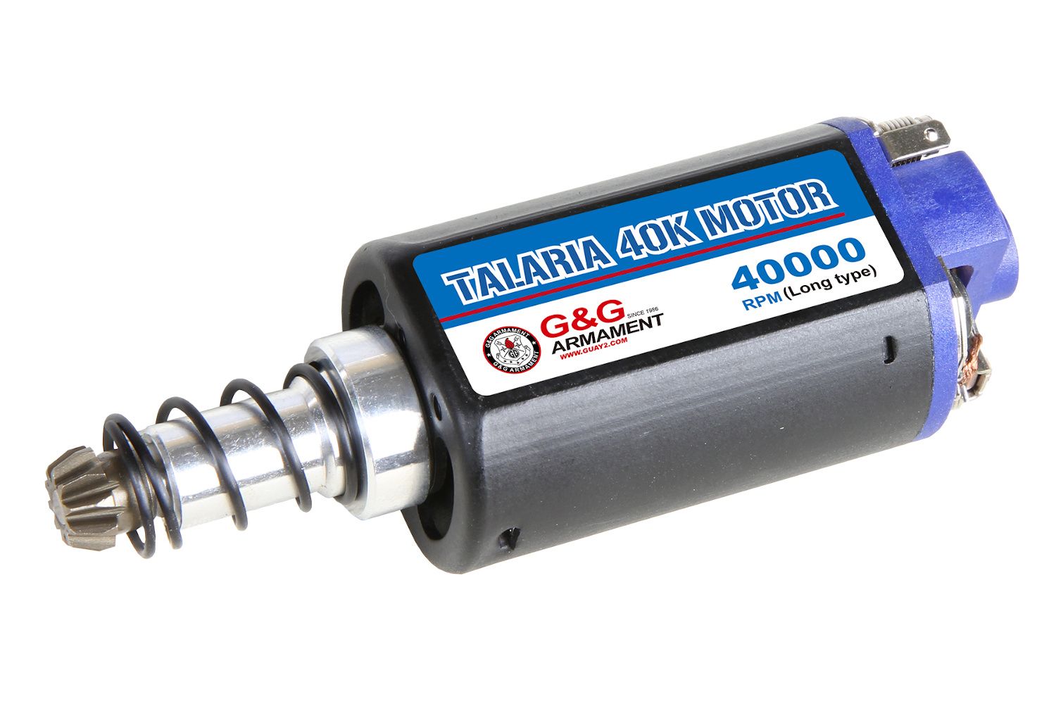 Spice up your AEG withe a high torque Talaria motor from G&G! This 40k motor provides high toque for pulling tougher springs, without breaking the bank! It is compatible with most V2 gearboxes, and other styles of gun that utilize a long type motor! It features powerful Neodymium magnets for a strong pull and long life time, as well as a durable metal alloy casing. Order yours from Airsoft GI today!
