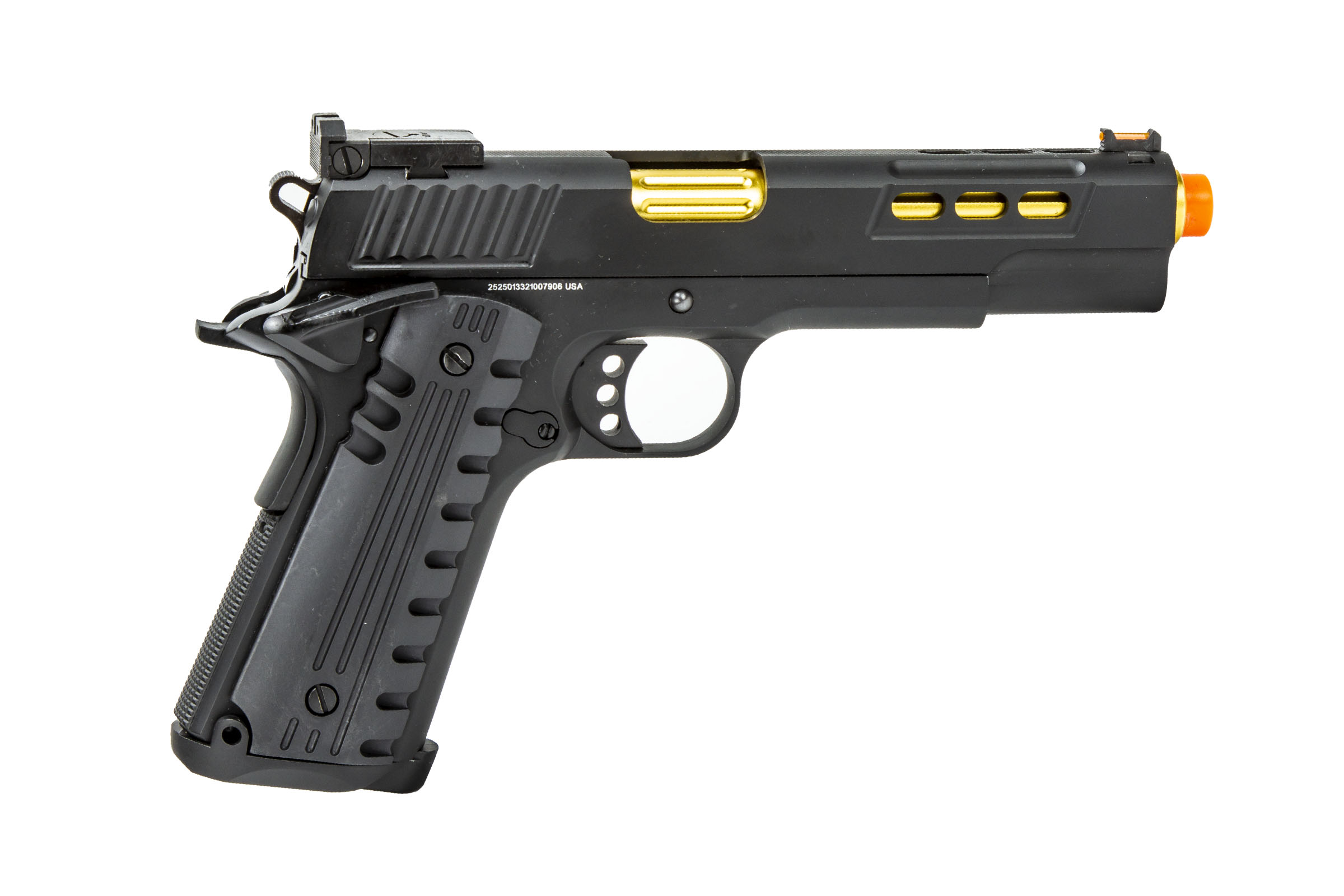 Golden Eagle 3368 OTS .45 1911 Gas Blowback Pistol w/ Slide Lightening Cuts (Black/Gold)