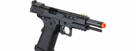 The Golden Eagle GE3331 Hi-Capa Pistol is a modern update to timeless classic! This Hi-Capa features an ultra-lightweight slide, which not only looks fantastic but feels incredibly solid due to its metal construction. The enlarged magazine baseplates make reloading faster, while giving you even better gas efficiency than other models. Fiber optic sights round out the whole package for quick target acquisition.