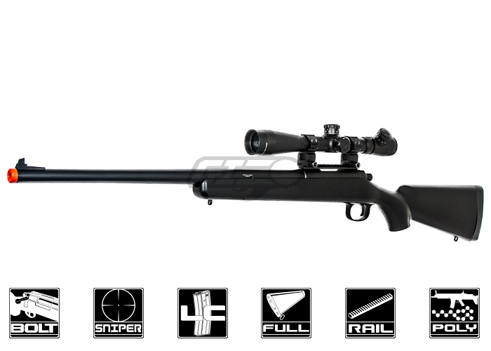 The HFC VSR 11 Sniper Rifle is an affordable yet reliable airsoft sniper rifle out of the box, perfect for those who want to get their feet wet in the sniping game, or as a backup for when their primaries go down! Spring operated, the bolt pull is short but very smooth because of the polished bolt. The reduced amount of friction on the bolt allows for an easier pull for the user and quicker follow up shots. Externally, the stock is made out of a strong polymer material and the outer barrel is constructed out of metal. Above the bolt assembly is a monolithic upper rail constructed out of metal to provide the user with a wider array of options when positioning their optic of choice. Overall, this is an affordable and reliable airsoft gun for those looking to become the sniper on the field.