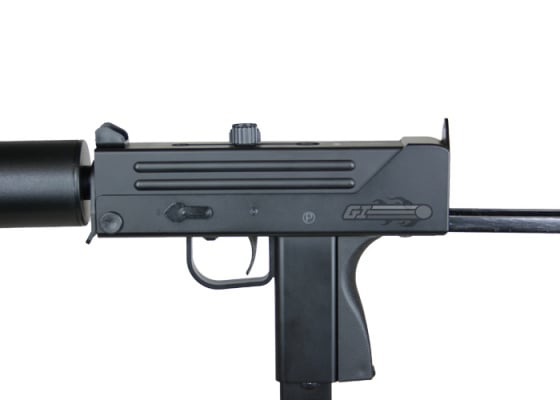 The HFC Mac11 is an awesome gas blowback SMG. It will handle both green gas and 134A very well. The rate of fire on this airsoft guns so high it will empty the 50 round magazine in about 3 seconds. It can either shoot on semi or full auto. Additional features include a retractable metal stock and a forward sling swivel, it also comes with a barrel extension. This is a great back up gun or CQB primary if you cannot afford a full size AEG.