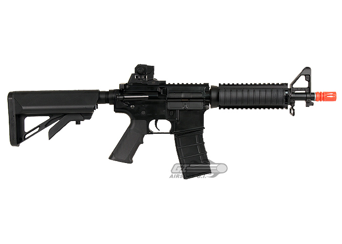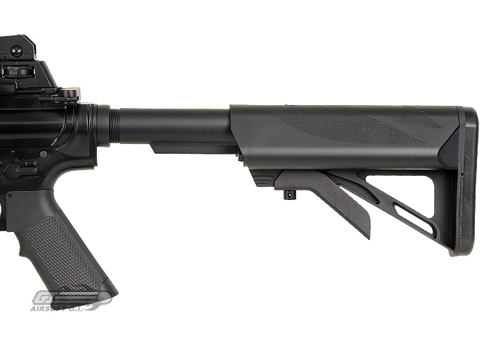 The ICS M4 CQBR Airsoft Gun is a terrific addition to ICS's Sportline series of AEGs. This gun features ICS' famous split version 2 gearbox which allows the user to split the upper and lower receiver just like the real thing. Also, the forward assist functions to reduce gearbox pressure by releasing the anti-reversal latch so the spring can decompress, a feature not commonly found on airsoft guns. Most of the gun is made from high quality polymer with a metal multi-piece barrel and gearbox. The adjustable crane stock can be set to the user's comfort and to house the battery for the gun, hiding the wires. This crane stock is very unique, it can only house the ICS Crane Stock Battery that is made for this gun; the contact for the battery is not made with the traditional tamiya connector but with a contact plate built into the stock. This stock set up ensures that no wires impede the movement of the stock, you will always be able to adjust the stock all the way across it's movement spectrum. The rail system provides an excellent platform for performance enhancing accessories like the included vertical grip or flashlight. You'll never run dry with this AEG because ICS offers a high capacity magazine that holds 300 rounds! Additionally they give you 1000 rounds in .20g BBs in a convenient easy-pour bottle. This is an excellent airsoft gun for the avid player or tactical trainer.