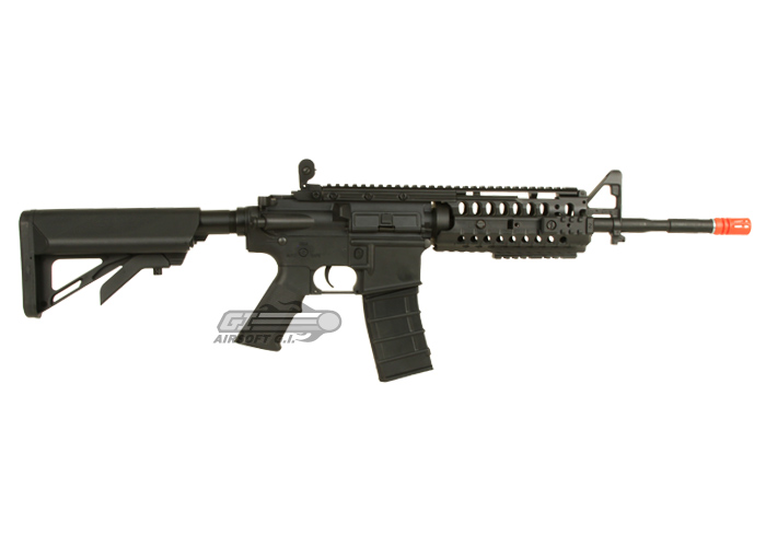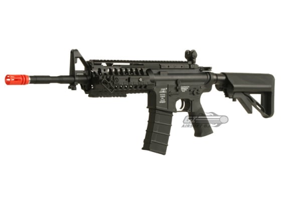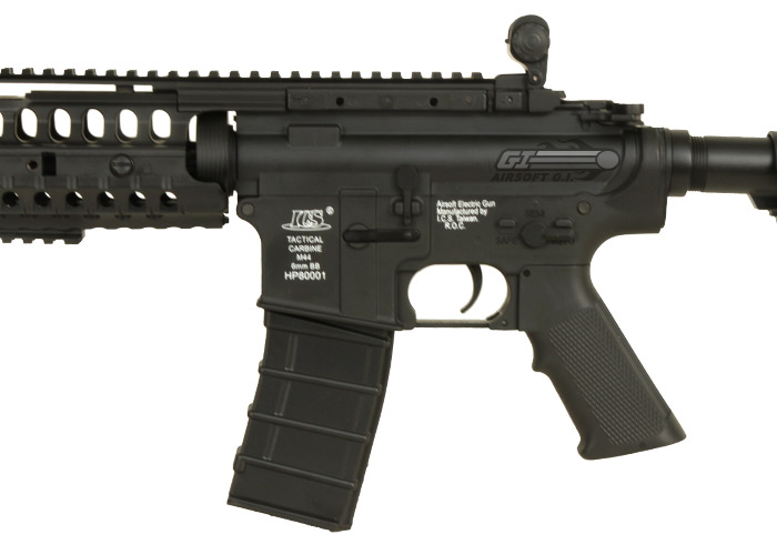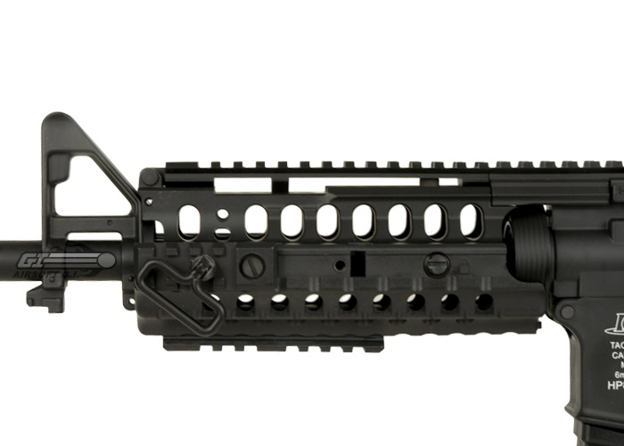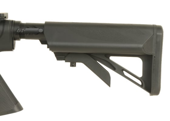 The ICS M4 S-System Sportline Airsoft Gun is a great new addition to ICS's lineup of sportline airsoft guns. It is constructed entirely out of their high-quality, durable polymer, which cuts down on both the weight and the overall cost of the gun. The internals of this gun are the same reliable, hard hitting internals that we have come to expect from ICS, and the S-System hand guards, which feature moveable accessory rails and a sling point, sit very snug inside the TM Style delta ring for an unwavering font hand platform. This airsoft gun differs from ICS's other S-System in that they have re-wired it to the rear so that the battery is housed in the crane stock. This crane stock is very unique, it can only house the ICS Crane Stock Battery that is made for this gun; the contact for the battery is not made with the traditional tamiya connector but with a contact plate built into the stock. This stock set up ensures that no wires impede the movement of the stock, you will always be able to adjust the stock all the way across it's movement spectrum. Overall, this sportline airsoft gun from ICS is sure to please, and will make a great addition to any player's arsenal.