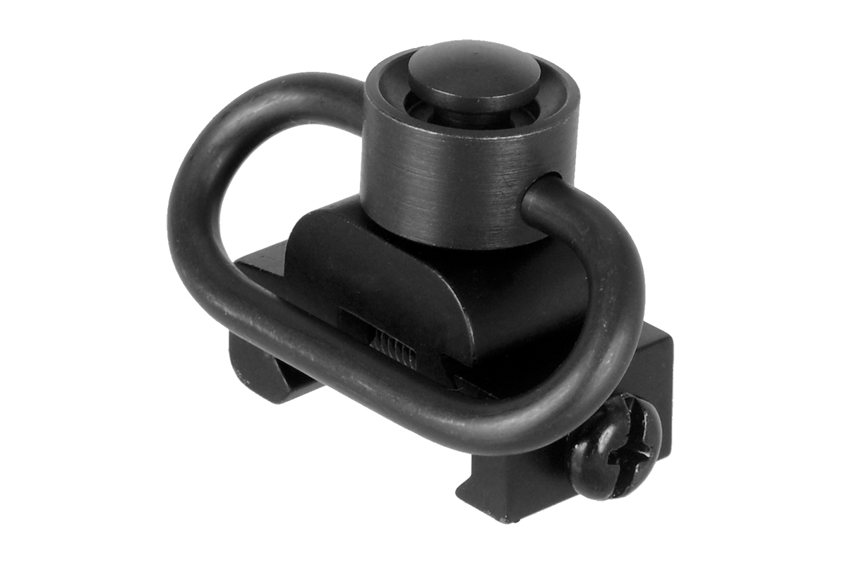 The RIS Sling Mount with QD Swivel is constructed out of a strong metal and simply mounts onto most rail systems. The benefit of having this will allow the user to mount their sling to a specified point to prevent disruption of other accessories. The QD sling mount allows the user to detach quickly if needed.