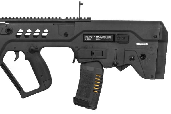 A polymer body keeps the IWI Tavor Flat Top AEG light and easy to carry over a long period of time. The rail section toward the top permits a wide range optics that you can attach. Additionally, the front and rear sights fold down when not in use. On the inside, you'll find a custom high-strength metal gearbox, which is the same model used on the TAR-21. The Tavor CTAR bullpup AEG is built with an inline MOSFET to improve trigger response, and if you're looking for programmable power, you can add the ARES electronic fire control system. Do you plan on switching from field to CQB-type games? If you are looking to head into a CQB match, you may need to swap the spring to have the airsoft gun shoot below 350 FPS. The IWI Tavor CTAR Flat Top (Black) comes with a quick change spring system that makes it a breeze to change the muzzle velocity without the hassle of taking out all the internal parts of the gearbox. It has adjustable hop-up to keep your shots accurate at close range. The rifle is effective at distances greater than 150 feet as well. Overall, this model is a suitable choice for adaptability on the field for many different roles. The Umarex Tavor CTAR has the features you expect from a high-end AEG, including a functional bolt catch and sling mount attachment points.Specifications: