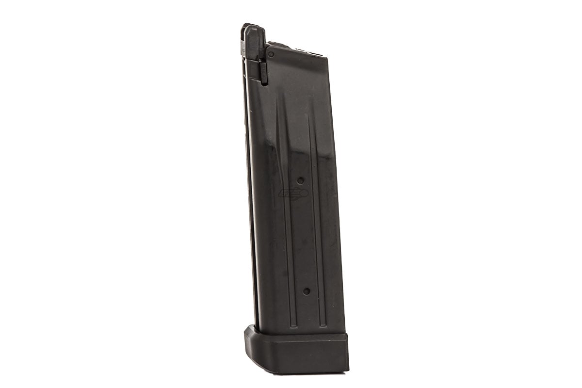 JAG Arms has finally brought their version of a high capacity magazine gas blow back pistol. The GM5 is compatible with Tokyo Marui and WE Tech parts and magazines giving you many options to upgrade and repair the airsoft gun in the long run. The extra BB capacity will assist in outplaying others in pistol only matches or if you simply need a weapon with more ammo storage. The frame and slide are constructed out of a light weight yet durable metal that works flawlessly with the hard felt blowback action. As an extra precaution, the grip safety toward the rear must be compressed with your hand to allow the trigger to pull back for a shot. Additionally, this model has longer slide compared to its GM4 counterpart and an attachment point on the bottom of the grip for a pistol sling. Overall, the JAG Arms GM5 is a top option for those looking to use their pistol as a primary with tons of compatible magazines and upgradeable internals available in the market.