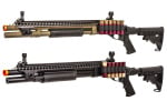 Powered by green gas, this all metal shotgun is capable of firing between three and six BB's at one time by manipulating a switch near the ejection port. The scatterguns have three inner barrels with individual fixed hop up units, giving you great CQB range as well as a decent amount of BB spread. The shotgun features a gas tank hidden inside the buffer of the airsoft gun. The shotgun is compatible with any TM 30 round style shell, and the 30 round shells used for UTG Spring Shotguns, which is predominately used in M3 style triburst shotguns. One major advantage that a gas shotgun has over a spring shotgun is the ease in which it takes to cock the gun. Without a spring needing to be compressed, the hand guard moves almost effortlessly for speedy followup shots. In addition, the realism in both operation and sound is unparalleled in gas shotguns.Specifications: