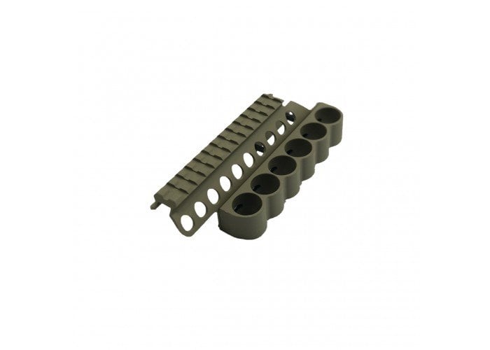 The JAG Arms Scattergun Side Saddle Kit is a simple way to attach your shells onto your airsoft gun without having to use a pouch. The saddle reveals all your shells for a unique and aesthetically pleasing accessory. There is a rail segment on top for equipping an optic for quicker target acquisition. The saddle should can also help with quicker reloading times.