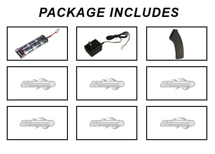 Package Includes: Gun, magazine, battery, charger, manual, cleaning rod