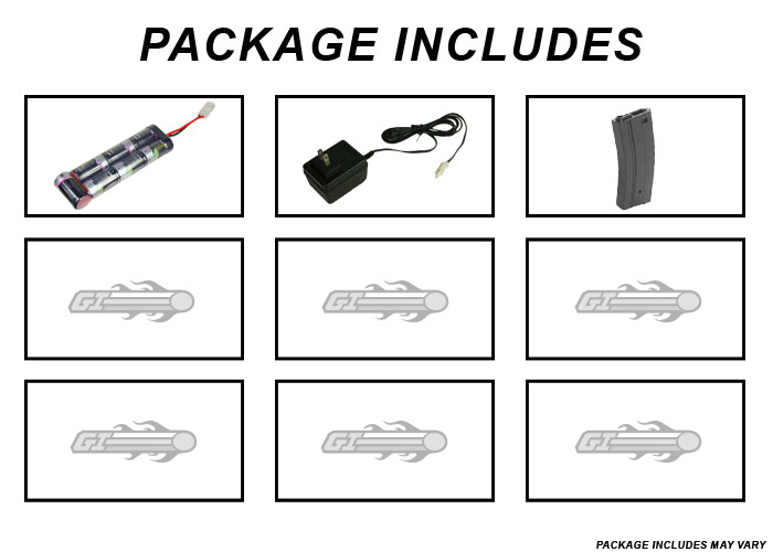 Package Includes: Manual, Magazine, battery, charger, Cleaning Rod, 200 pcs 0.2BBs