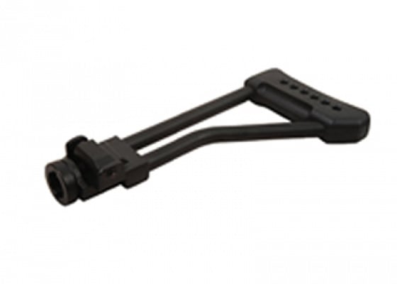 This folding stock is useful for builds that require a compact component installed. The metal construction is sturdy and well built to install onto most AEG M4 receivers. There is a rubber butt plate to ease the placement on your shoulder over a long period of time.
