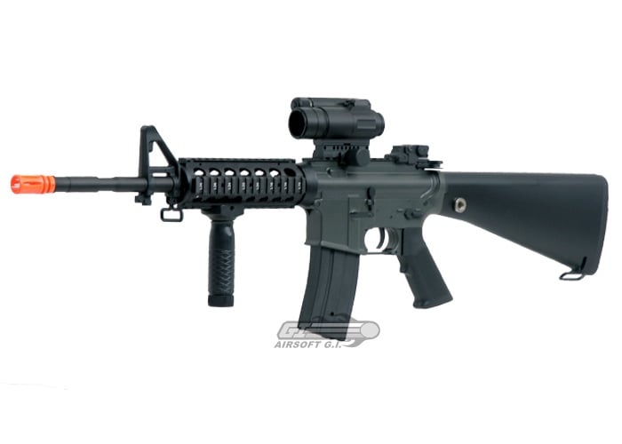 It is an exact replica of the famous assault rifle that is in use with the U.S. Military today. The working charging handle gives this gun a realistic action that even higher priced guns like CA do not have. The M4 RIS comes with a M4 length RIS unit that will allow the user to mount accessories like flashlights, lasers, foregrip, etc. The RIS also includes a large battery box that can fit large batteries for extended play time. JG AEGs are fully upgradeable and compatible with most after market external and internal parts. This airsoft gun includes a metal hi-capacity magazine and is also compatible with other major brands of standard and high capacity after market magazines. This gun is a must buy for those looking for a good priced starter gun.