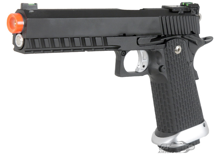 Back in the early days of airsoft to build a gun like this would have cost over $1000.00! Additionally, a 6" race pistol was almost impossible to find. KJW is providing this fantastic pistol to you for only $135.00! Additionally, this gun is compatible with CO2 which will give you even more firepower!