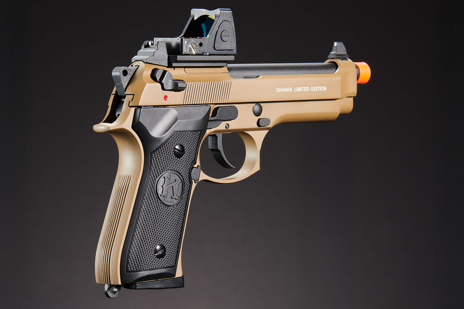 KLI KL92 OR Dual Power CO2 GBB Airsoft Pistol Red Dot Combo (Tan)