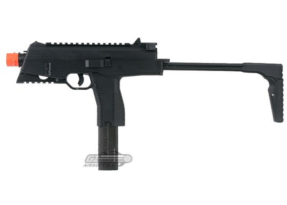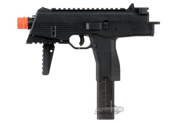 The KWA KMP9R is a fantastic gas blow back airsoft gun. It features KWA's famous NS2 Gas System which gives the gun an unbelievable rate of fire, unparalleled reliability, and unimaginable performance. The barrel is made of steel, the rest of the frame is made from a fiber reinforce polymer, therefore the gun is lightweight but just as strong as any other full metal gun. The stock folds to the side and can even be removed if you feel like it. The charging handle functions to pull the blowback assembly back. The kick and noise given off by this gun when it's fired is unlike any other gas gun in the world. The movement is smooth and crisp, the noise is loud and distinctive, there really is nothing else like it on the market. The KMP9R features three rails, a top rail for optics, right mounted side rail for accessories, and a bottom rail for additional accessories or a vertical grip. The fire selector is above the magazine release and when 'full auto' is selected the user still has to the ability to fire semi auto with a half pull of the trigger. The included magazine hold 48 rounds, which isn't a lot considering this gun can dump the entire magazine in about 2 seconds. This is an excellent primary for CQB players and and excellent secondary option for MILSIM snipers.