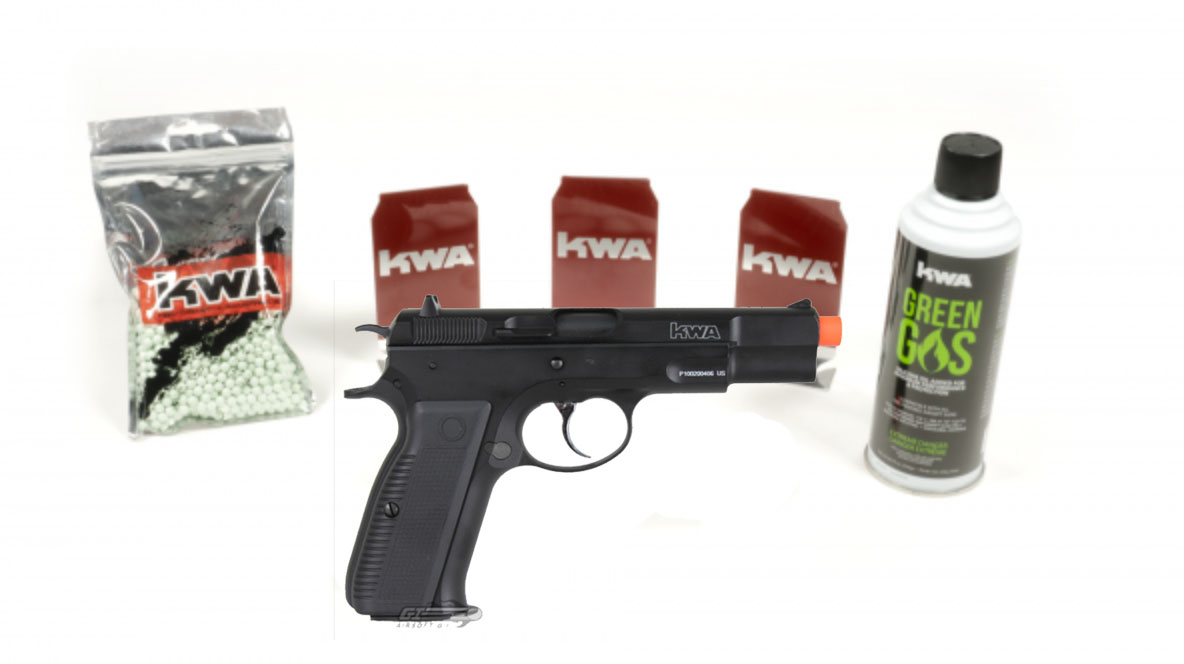 Set yourself up for quality target training before you hit the field with this excellent combo package from KWA. Featuring a KWA Kz.75 as well as a set of targets, 1000 rounds of ammo and a can of green gas, you'll have everything you need to practice in the backyard.