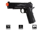 The KWA Full Metal M1911 Mark IV PTP Airsoft Gun is an astounding work of art. The frame and slide are constructed of metal which give the gun a very realistic look, feel, and sound when fired. Aiding in that amazing sound is the metal hammer and stiff hammer and slide springs. The barrel is conical which eliminate the barrel bushing, the end result is an updated 1911 look. The guide rod sits underneath the barrel to keep the slide on track. The rear sight has dots for faster target acquisition. The grip safety comes complete with a beaver tail to help control recoil and the traditional thumb safety is ambidextrous. The trigger has three holes bored out of it and the hammer is bored into an triangular shape. The frame, below the barrel, features a 20mm rail section for mounting lights or lasers. Finally, to help reloading, the magazine well has been slightly elongated and beveled at the entrance. KWA is well known for making some of the highest quality airsoft guns in the world, and this new 1911 definitely ranks up there with the best of them.