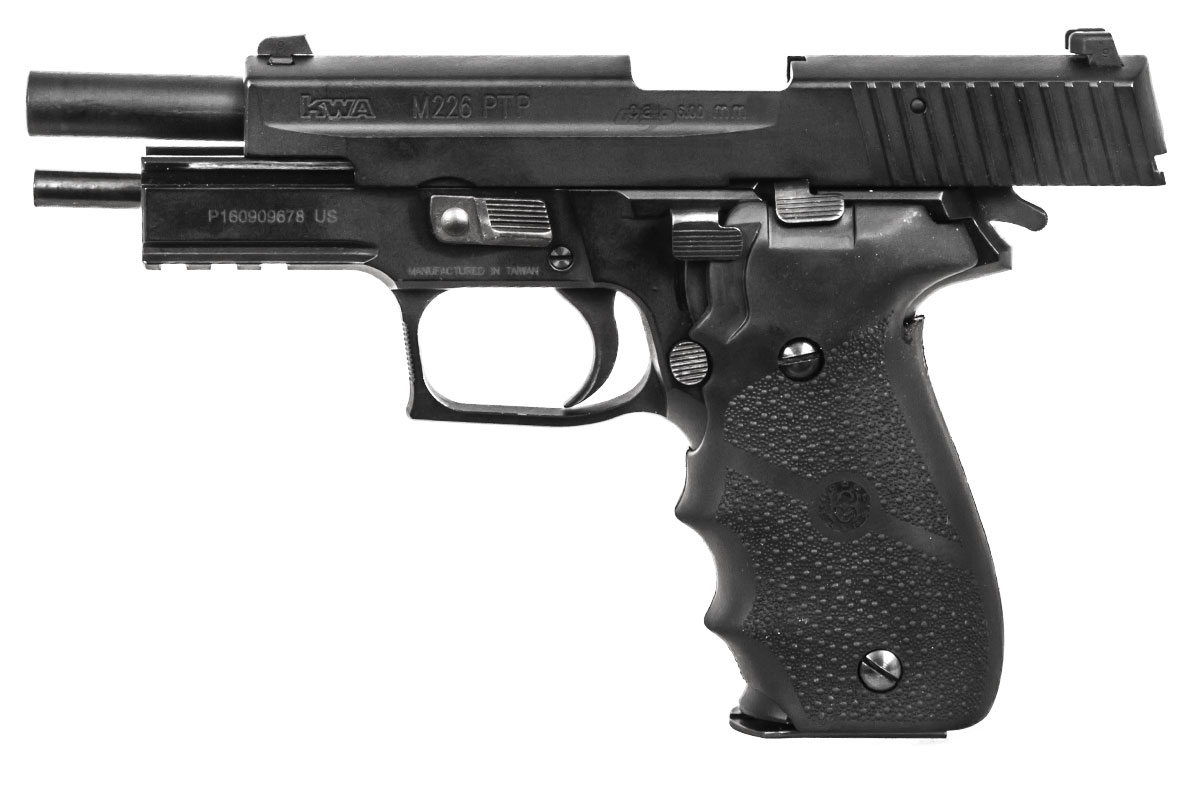 Used by various law enforcement agencies and military units from around the world, the M226 also features a fully functional decocker on the left side allowing users to safely release the hammer with a chambered round, as well as a fully functional slide catch and magazine catch. An accessory rail allows the user to add an array of attachments to better adapt to many combat situations. Powered by the reliable NS2 gas system, the KWA M226-LE is a fully capable combative training tool for both servicemen and civilians.Specifications: