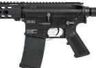 The Custom KWA Troy Airsoft Gun by Airsoft GI is another custom gun featuring the well known KWA KM4 Full Metal Lineup. Externally, the gun has been fitted with a Madbull 9" Troy TRX Battle Rail to allow the user a lightweight and low profile setup. With the rail are three small adapters that can not only be mounted at 90 degree angle, but at a 45 degree angle as well. Troy Industries is famous for manufacturing advanced small arms components and accessories for the US Government. Their products are widely used by military, law enforcement, special forces, and civilian hobbyists, and Madbull has done an incredible job transitioning their impeccable quality over to the airsoft world. The Madbull Troy TRX Battle Rail boasts some great features that are just not found on other rail systems, like their 3 bonus quick-attach rail sections, Troy Industries' famous state-of-the-art rotary locking system, free float design and more. Not only does this rail system work great, it is sure to give your airsoft gun a distinct tactical advantage as well. The barrel has been swapped with a 14in outer barrel to cover the longer inner barrel. The longer inner barrel will give the gun more range and accuracy. The outer barrel contains a two piece design. This works exceptionally especially for those who prefer to run a barrel extension instead. Internally, the gun features KWA's high performance gearbox. Overall, this gun features a high performance gearbox with a lightweight rail system. It would cost much more if you were to purchase the gun and other parts separately. Only Airsoft GI can provide you with the exceptional product.