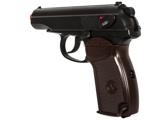The Makarov pistol resulted from a design competition for replacing the Tokarev TT-33 semi-automatic pistol and the Nagant M1895 revolver. Nikolai Makarov took up the German wartime Walther "Ultra" design, fundamentally an enlarged Walther PP, utilizing the 9x18mm Makarov cartridge designed by B.V. Semin in 1946. The Makarov pistol was of straight blowback operation, with the 9x18mm Makarov cartridge being the most powerful cartridge it could safely fire. The KWA MKV is an extremely lightweight, compact sidearm. Featuring full metal construction, working safety, and integrated, fixed iron sights, the KWA MKV is the perfect pistol to fill out any Russian themed load out.