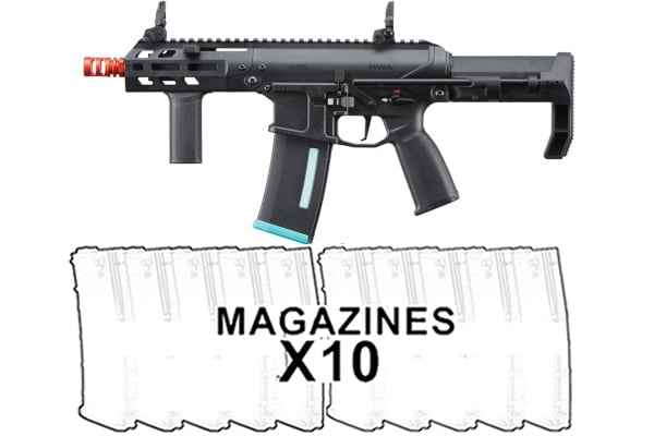 Love the gun and love the package deal! The EVE came super recomended and I can see why. It's snappy and super compact while still taking M4 mags, perfect for CQB. And getting 10 mags with it is a definite win for that price!