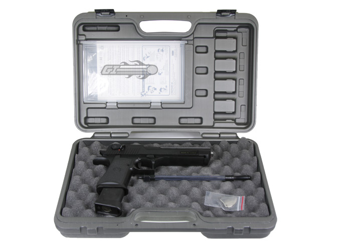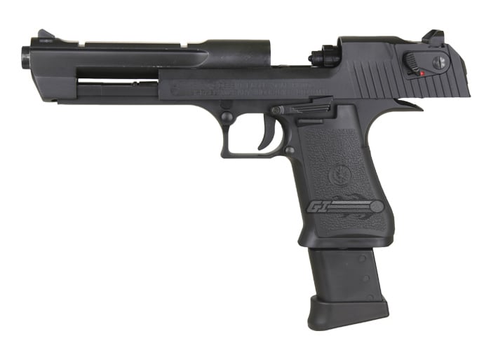 The KWC Full Metal Desert Eagle Blowback Pistol (CO2) is the only Officially Licensed Desert Eagle on the market. This pistol is beautifully constructed of metal, the 'clack' made by slide when released is unlike any other full metal pistol. There are three settings on the safety switch, one for safe, one for semi, and one for FULL AUTO. That's right, this CO2 powered monster is a fully automatic pistol. The kick given by the blow back system is unparalleled. Don't miss your chance to get a full metal, full trades, gas blowback Desert Eagle from KWC.