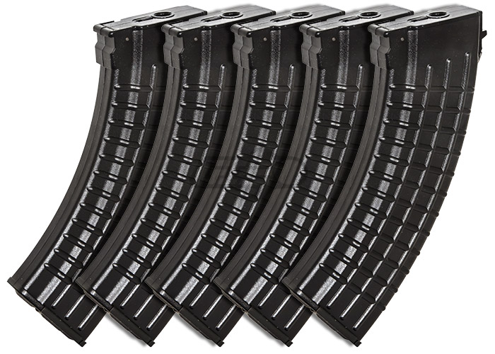 King Arms AK Waffle 140 rd. AEG Mid Capacity Magazine - 5 Pack (Black)